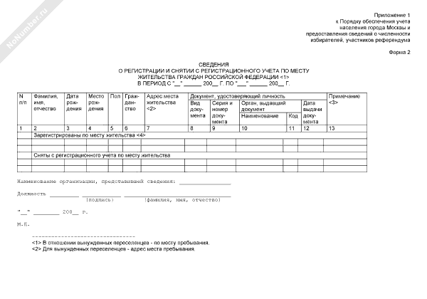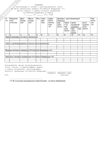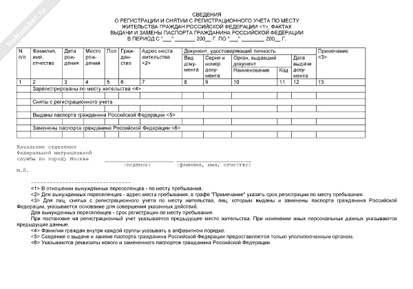 - 1652Сведения о регистрации и снятии с регистрационного учета по месту жительства граждан Российской Федерации (форма № 2)