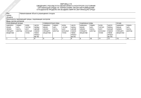 - 1700Сведения о результатах мониторинга и контроля состояния окружающей среды на территориях объектов размещения отходов и в пределах их воздействия на окружающую среду