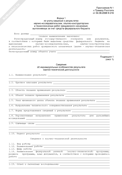 - 1688Сведения о результатах научно-исследовательских, опытно-конструкторских и технологических работ гражданского назначения, выполняемых за счет средств федерального бюджета (форма № 1)