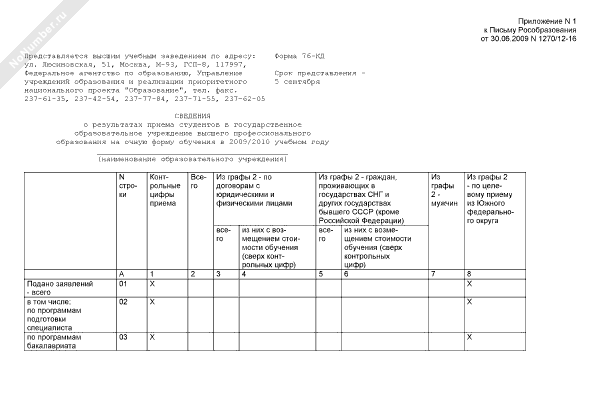 - 1692Сведения о результатах приема студентов в государственное образовательное учреждение высшего профессионального образования на очную форму обучения в 2009/2010 учебном году. Форма № 76-КД