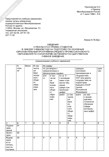 - 1684Сведения о результатах приема студентов в государственное высшее учебное заведение по очной форме обучения. Форма № 76-КД