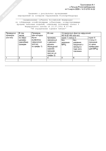 - 1694Сведения о результатах проведенных мероприятий по контролю Управлением Роспотребнадзора в субъекте Российской Федерации по соблюдению хозяйствующими субъектами, осуществляющими продажу табачных изделий, отдельных положений статьи 3 Федерального закона от 10.07.2001 № 87-ФЗ «Об ограничении курения табака»
