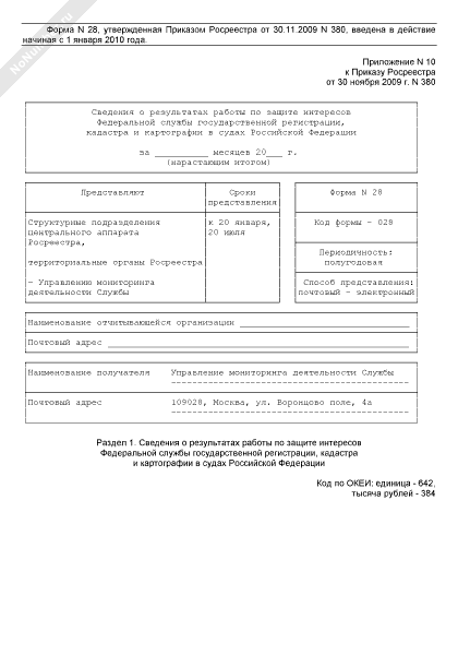 - 1696Сведения о результатах работы по защите интересов Федеральной службы государственной регистрации, кадастра и картографии в судах Российской Федерации. Форма № 28 (полугодовая)