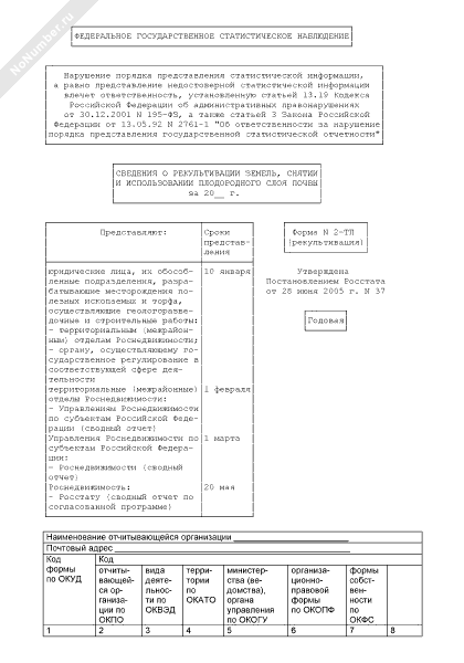 - 1712Сведения о рекультивации земель, снятии и использовании плодородного слоя почвы. Форма № 2-ТП (рекультивация)