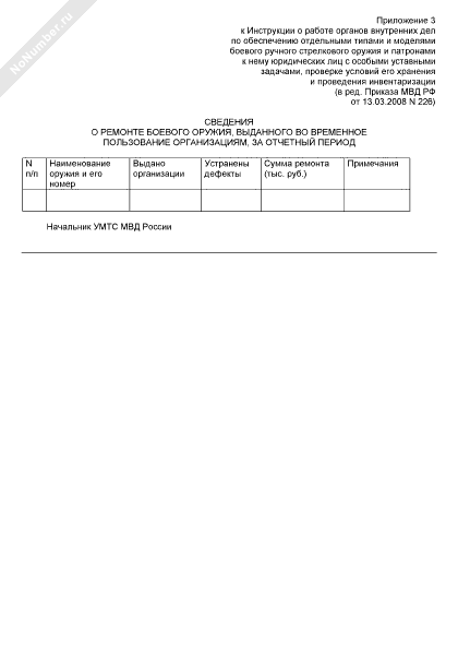 - 1713Сведения о ремонте боевого оружия, выданного во временное пользование организациям, за отчетный период