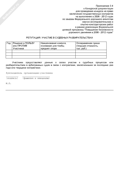 - 1717Сведения о репутации организации (участии в судебных разбирательствах) — участника конкурса на право заключения государственного контракта на выполнение научно-исследовательских и опытно-конструкторских работ по заказам Федерального дорожного агентства