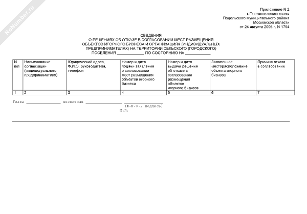 - 1720Сведения о решениях об отказе в согласовании мест размещения объектов игорного бизнеса и организациях (индивидуальных предпринимателях) на территории сельского (городского) поселения Подольского района Московской области