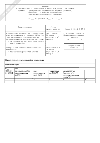 - 1705Сведения о результатах дополнительной диспансеризации работающих граждан в федеральных учреждениях здравоохранения, находящихся в ведении Федерального медико-биологического агентства. Форма № 12-Д-2-09-1