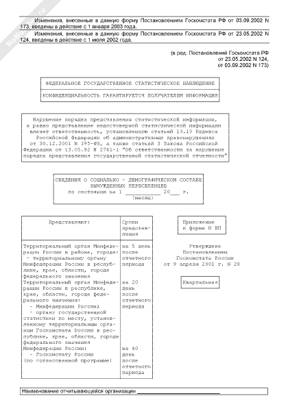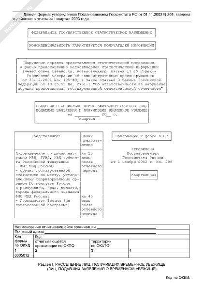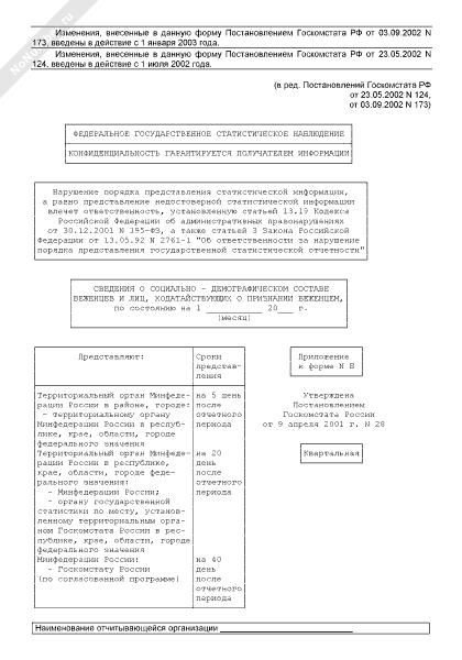 - 1853Сведения о социально-демографическом составе беженцев и лиц, ходатайствующих о признании беженцем (приложение к форме № Б)