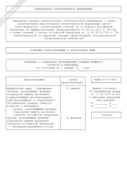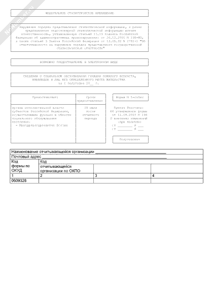 - 1857Сведения о социальном обслуживании граждан пожилого возраста, инвалидов и лиц без определенного места жительства. Форма № 5-собес (полугодовая)