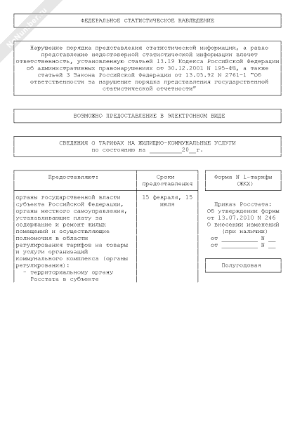 - 1943Сведения о тарифах на жилищно-коммунальные услуги. Форма № 1-тарифы (ЖКХ) (полугодовая)