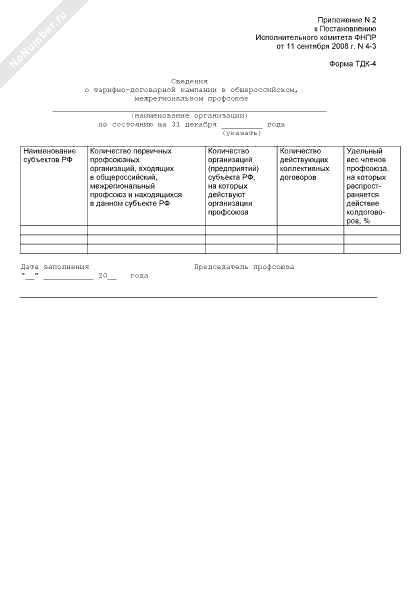 - 1942Сведения о тарифно-договорной кампании в общероссийском, межрегиональном профсоюзе. Форма № ТДК-4
