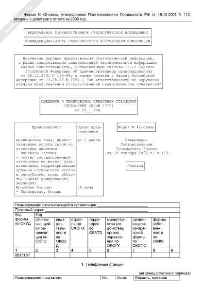 - 1953Сведения о технических средствах городской телефонной связи (ГТС). Форма № 42-связь