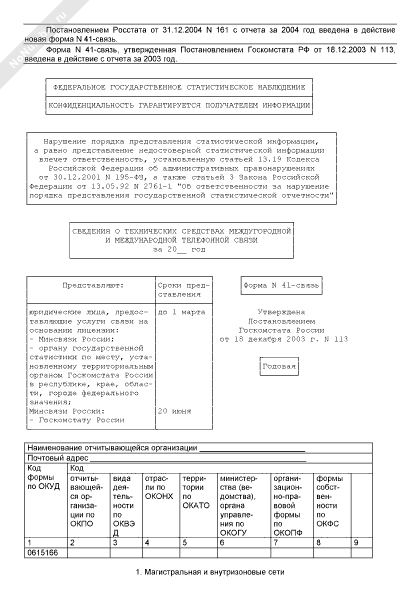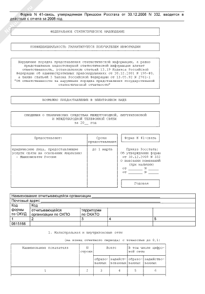 - 1960Сведения о технических средствах междугородной, внутризоновой и международной телефонной связи. Форма № 41-связь