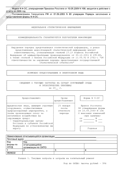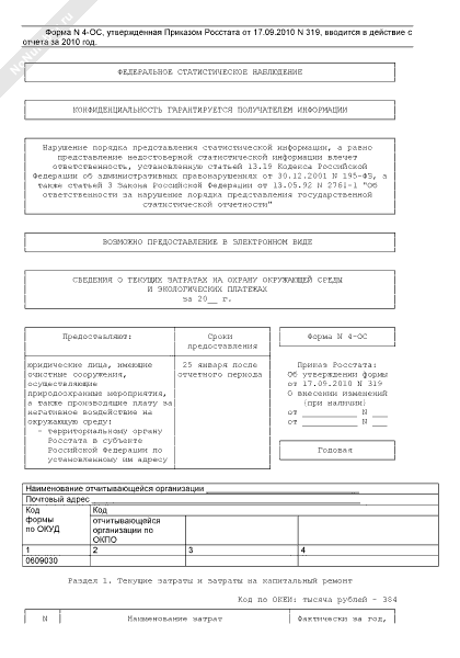 - 1947Сведения о текущих затратах на охрану окружающей среды и экологических платежах. Форма № 4-ОС (годовая)