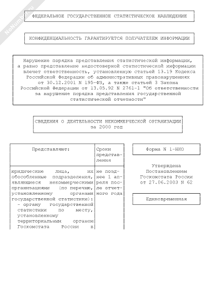 Сведения о деятельности некоммерческой организации. Форма № 1-НКО
