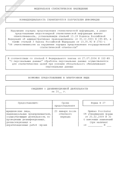 Сведения о дезинфекционной деятельности (форма № 27)