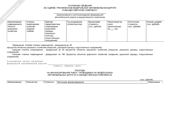 Основные сведения об ущербе, причиненном федеральной автомобильной дороге и имущественному комплексу (рекомендуемый образец заполнения)
