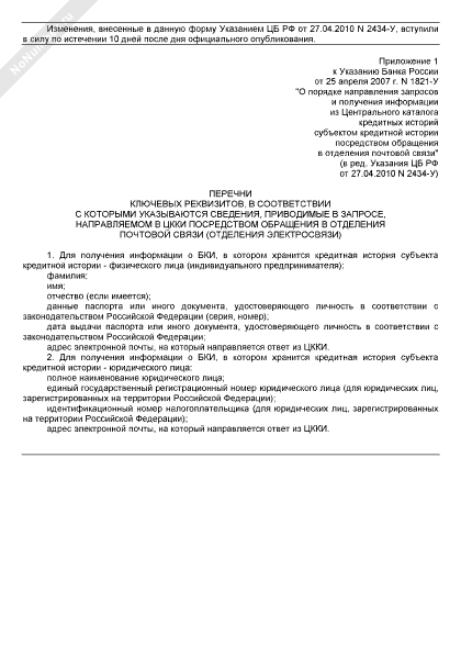 - Источник– Указание ЦБ РФ от 25.04.2007 № 1821-У (редакция от 27.04.2010 № 2434-У)