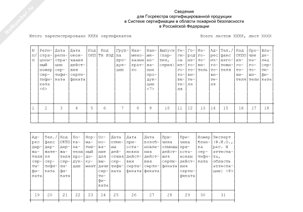 Сведения для государственного реестра сертифицированной продукции в системе сертификации в области пожарной безопасности в Российской Федерации (рекомендуемый образец заполнения)