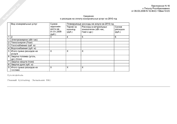 Сведения о расходах на оплату коммунальных услуг на 2010 год