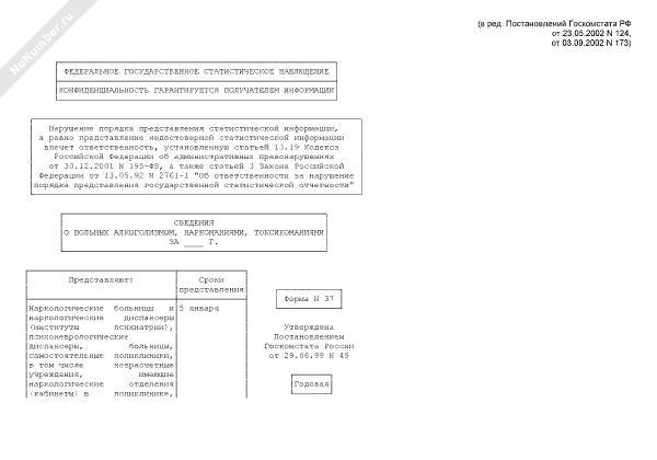 Сведения о больных алкоголизмом, наркоманиями, токсикоманиями. Форма № 37 (рекомендуемый образец заполнения)