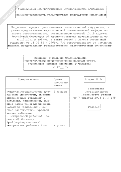 Сведения о больных заболеваниями, передаваемыми преимущественно половым путем, грибковыми кожными болезнями и чесоткой. Форма № 34 (рекомендуемый образец заполнения)