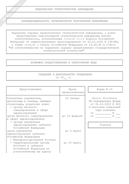 Сведения о деятельности стационара. Форма № 14 (годовая)