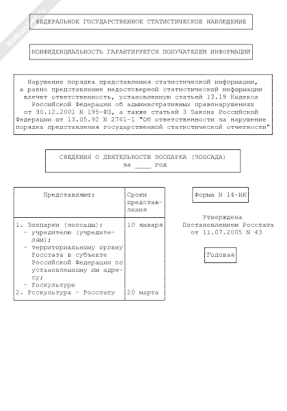 Сведения о деятельности зоопарка (зоосада). Форма № 14-НК