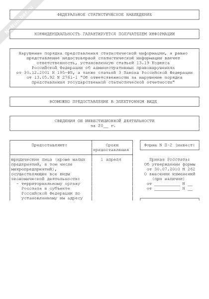 Сведения об инвестиционной деятельности. Форма № П-2 (инвест) (годовая)