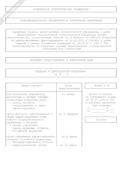 Сведения о деятельности стационара. Форма № 14 (годовая)