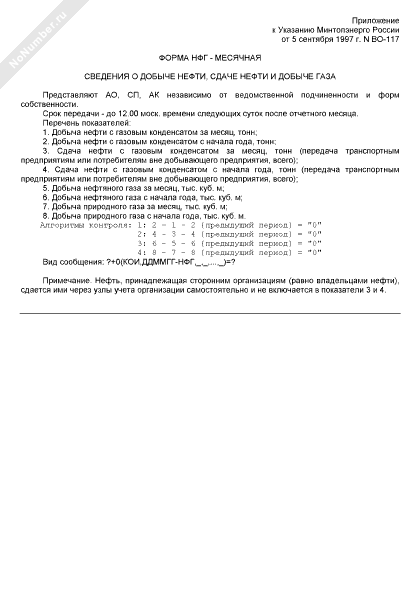 Сведения о добыче нефти, сдаче нефти и добыче газа. Форма № НФГ (месячная)