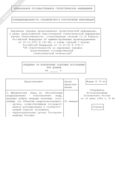 Сведения об извлечении полезных ископаемых при добыче. Форма № 70-тп