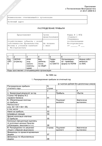 Сведения о распределении прибыли. № 1-ФГД (годовая)