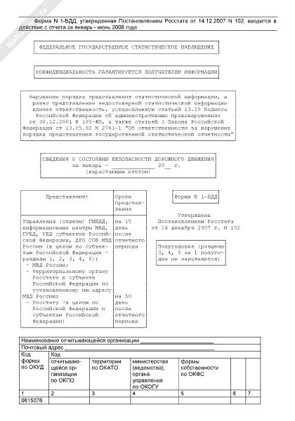 Сведения о состоянии безопасности дорожного движения. Форма № 1-БДД