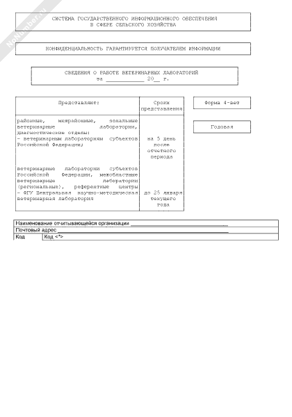 Сведения о работе ветеринарных лабораторий. Форма № 4-ВЕТ