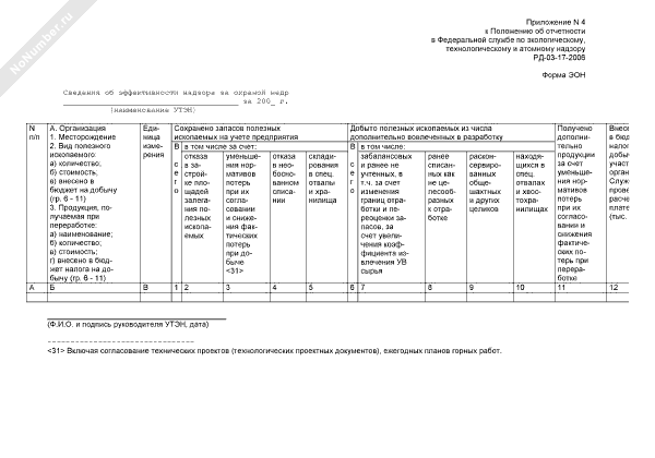 Сведения об эффективности надзора за охраной недр. Форма № ЭОН