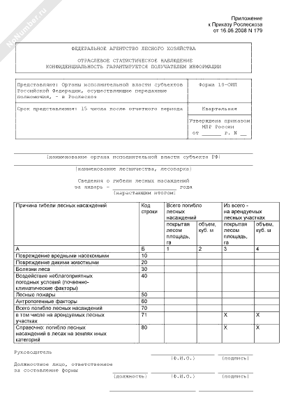 Сведения о гибели лесных насаждений. Форма № 10-ОИП