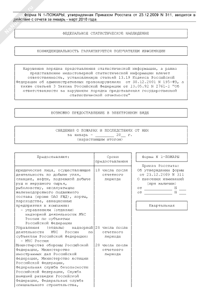 Сведения о пожарах и последствиях от них. Форма № 1-ПОЖАРЫ