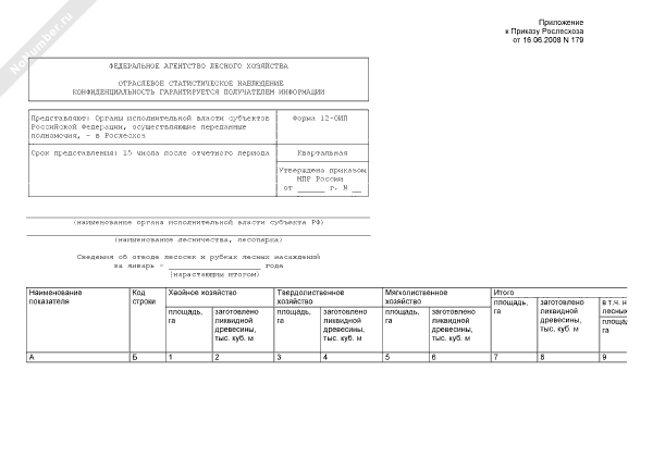 Сведения об отводе лесосек и рубках лесных насаждений. Форма № 12-ОИП