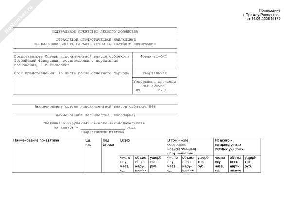 Сведения о нарушениях лесного законодательства. Форма № 21-ОИП