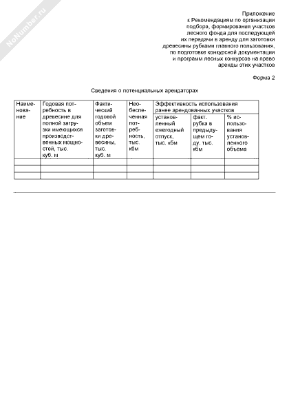 Сведения о потенциальных арендаторах участков лесного фонда (форма № 2)