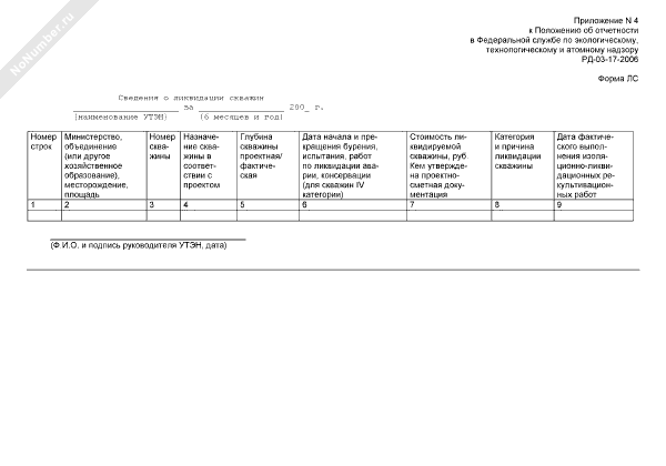 Сведения о ликвидации скважин. Форма № ЛС (рекомендуемый образец заполнения)