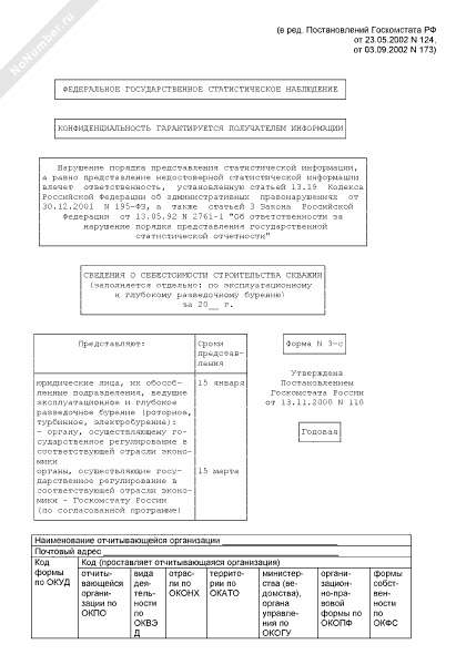 Сведения о себестоимости строительства скважин. Форма № 3-с