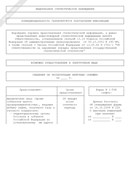 Сведения об эксплуатации нефтяных скважин. Форма № 1-ТЭК (нефть)