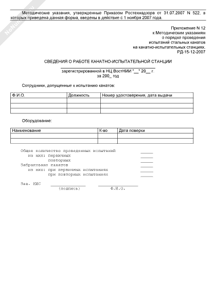 Сведения о работе канатно-испытательной станции