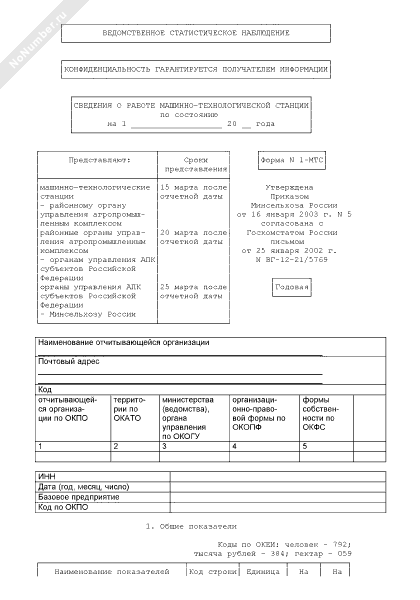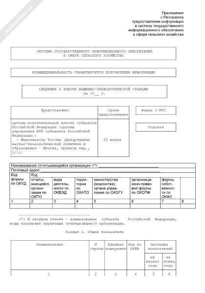 Сведения о работе машинно-технологической станции. Форма № 1-МТС