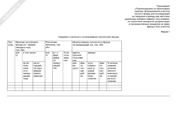 Сведения о наличии и использовании лесосечного фонда (форма № 1)