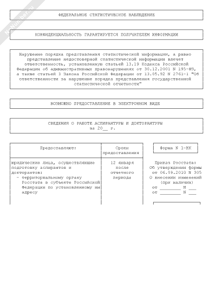 Сведения о работе аспирантуры и докторантуры. Форма № 1-НК (годовая)