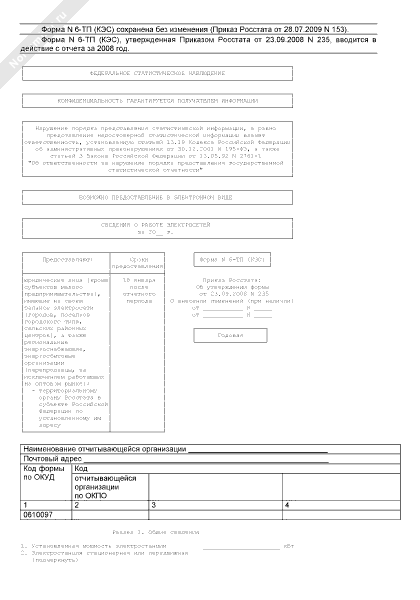 Сведения о работе электросетей. Форма № 6-ТП (КЭС) (годовая)